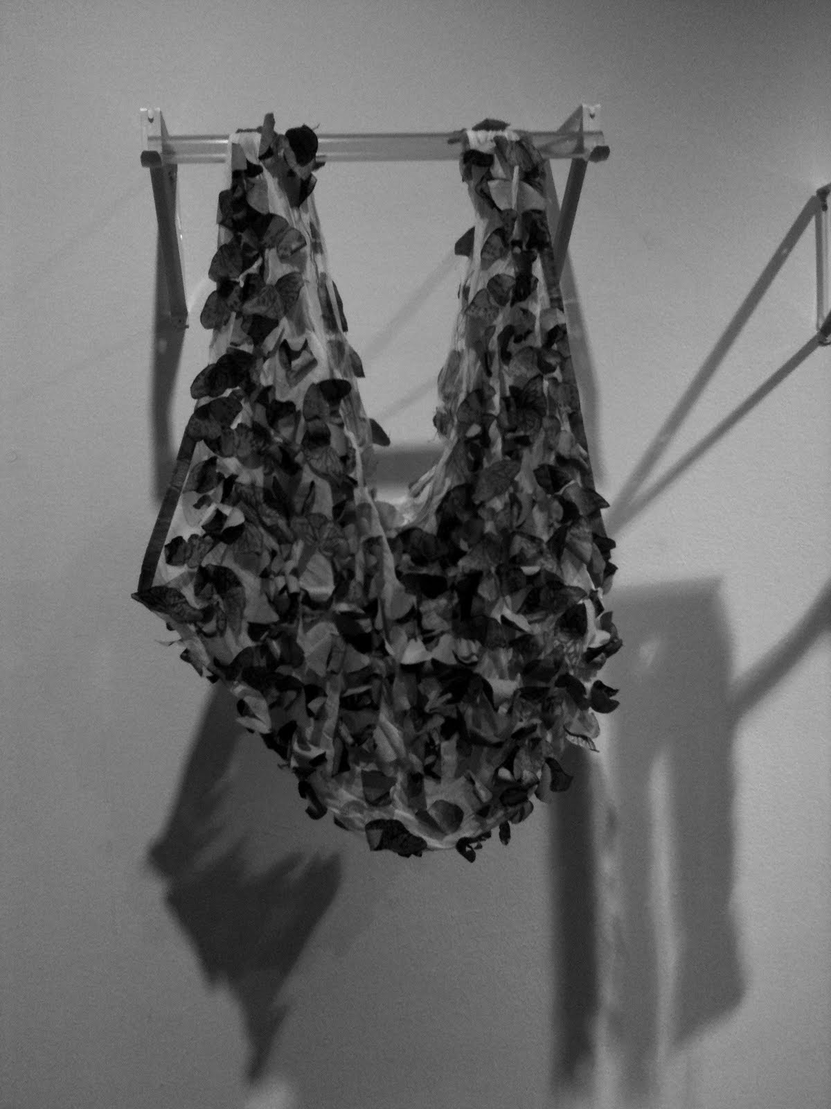 If the world were made of paper, I certainly wouldn't mind, and viewing HCCC's recent exhibit, The Paper Runway, I could at least get an idea of what it would be like, if all my clothes were made from paper. From a series of LBD's to a gorgeous black and white cut-out gown, a jacket made of hair and teabags, to a full suit cut from lottery tickets...this show was to die for. Artists from all ilks represented their interpretations, right down to tissued net skirts that flowed gently like the lightest of gossamer fabrics. A gorgeous Kimono-esque gown stood by itself and hypnotized me with its patterns and colors, while a delicate child's apron sat suspended with prints of Godzilla displayed like fine toile from a French chateau. Pretty sweet. The Paper Runway is definitely a feast of textural bliss, taking the art of adornment to a whole new level and throwing out inspiration like a virus. The connection between clothing and identity is a strong one and the pieces on display seem to convey this message nicely. If you live in H-town, I'd highly recommend checking out the show. Runs from June 4 - September 5.